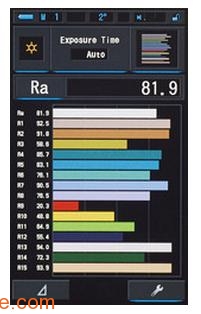 CL-7000A可輕松處理CRI測(cè)量數(shù)據(jù)。其通過(guò)簡(jiǎn)單的條形圖顯示包括所有單獨(dú)指數(shù)(R1至R15)在內(nèi)的Ra值。有關(guān)顯色的更多信息,請(qǐng)參閱光測(cè)量的相關(guān)內(nèi)容:光的語(yǔ)言。