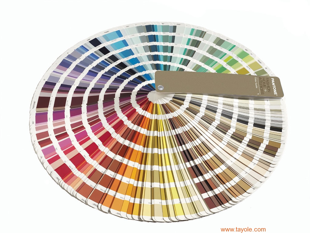 這些色彩也以《彩通服裝、家居+室內(nèi)裝潢色彩手冊(cè)》打孔扇形的形式提供,也提供棉布版(色號(hào)后綴為TCX)。