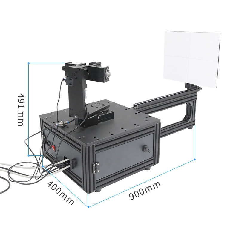 T-400-2Z主要由機箱底座、旋轉(zhuǎn)電機、可調(diào)節(jié)鏡頭夾具、圖卡掛板、手動控制盒等組成(如下圖)