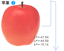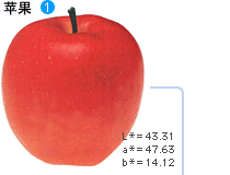 的顏色(L*=47.34, a*=+44.58, b*=+15.16)與蘋果