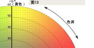 所表示的結(jié)果。 色差則在圖13上的圖形上表示出來(lái)。圖14使我們易于理解以L