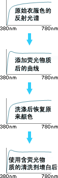 第II部分2頁中提到的,可見光波長范圍是從380nm到780nm。 舉例來說,熒光物質(zhì)吸收360nm波長的光線再以420nm波長的光線釋放,這樣,測量值中420nm這點(diǎn)波長的反射率或許會(huì)超過100%。 由于更多數(shù)量的光線變?yōu)榭梢姽?,因此人眼感覺就像物體本身在發(fā)光。 測量不含熒光的物質(zhì)的樣品時(shí),分光濾鏡位置可以在光源和樣品之間或樣品和接收器之間。 但在測量含有熒光物質(zhì)的樣品時(shí),為了符合人眼感觀視覺,分光濾鏡必須在樣品和接收器之間,只有這樣,才能使整個(gè)光源光譜照射在樣品上。 因此在用分光測色計(jì)測含熒光物質(zhì)的樣品時(shí),必須保證光源的光譜能量分布包含有紫外光范圍。