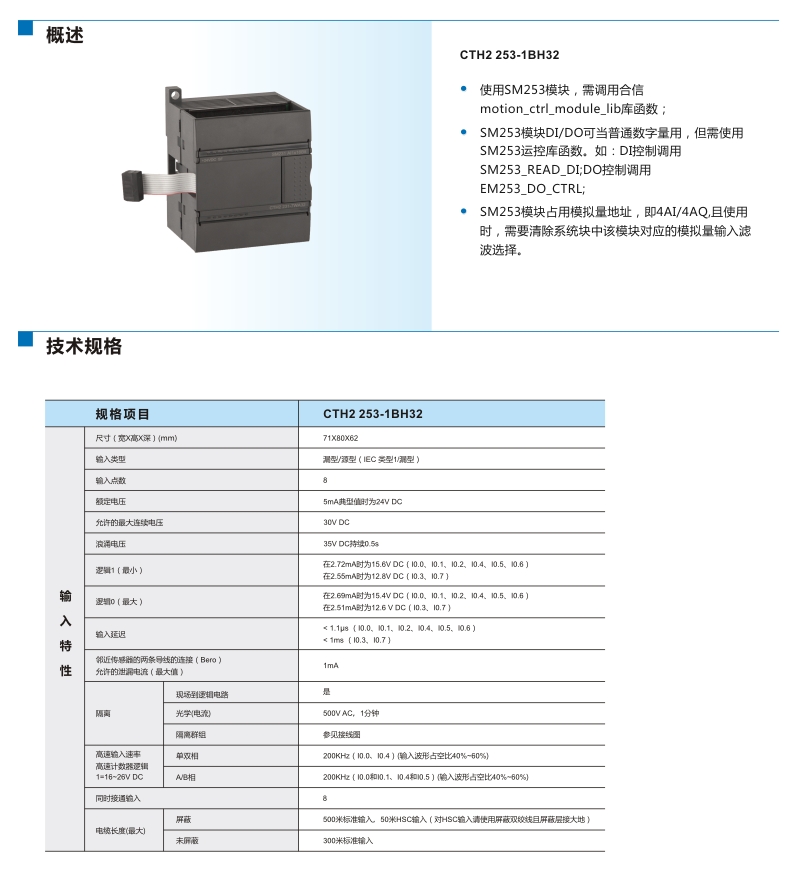 SM253 定位控制模塊 | 定位控制模塊,2路單相或AB相HSC輸入,200KHz,2軸PTO/PWM輸出,200KHz,合信運(yùn)動(dòng)控制庫(kù) | CTH2 253-1BH32 |