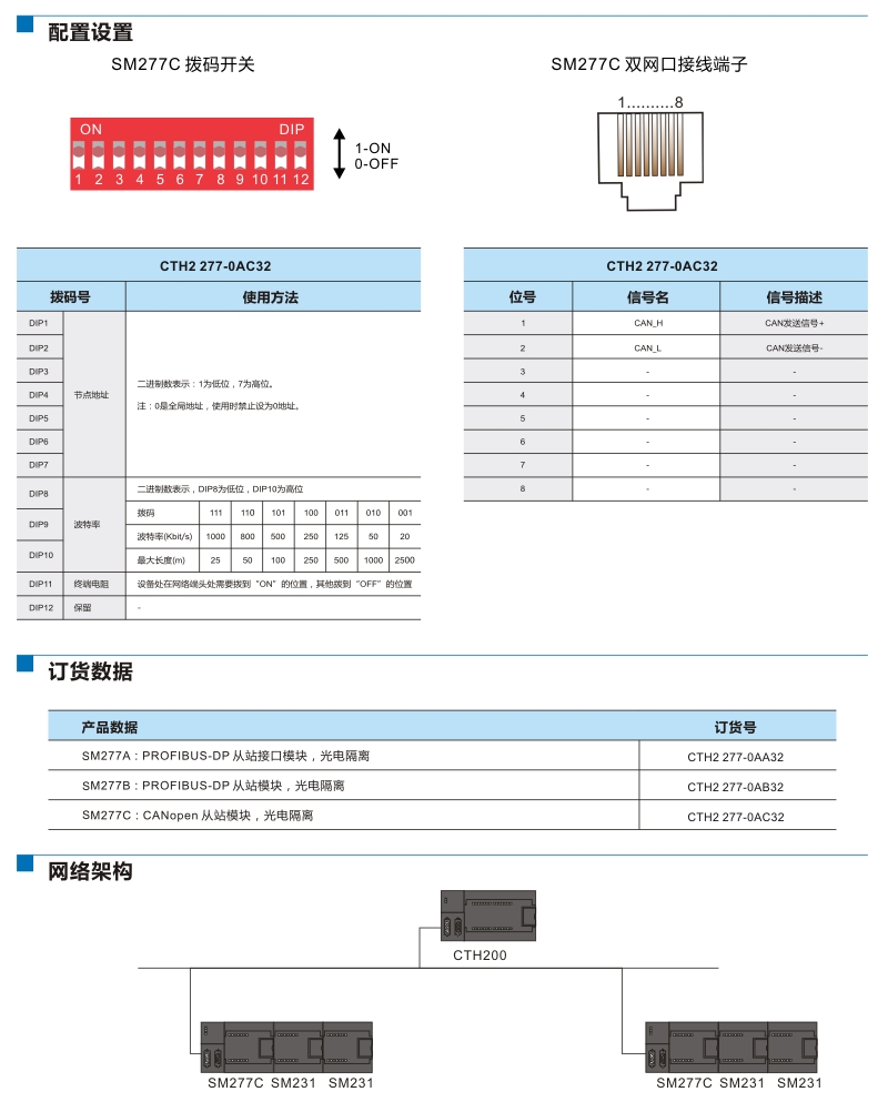 | CAN從站模塊,自帶8DI/6DO,光電隔離 | CTH2 277-0AC32 |