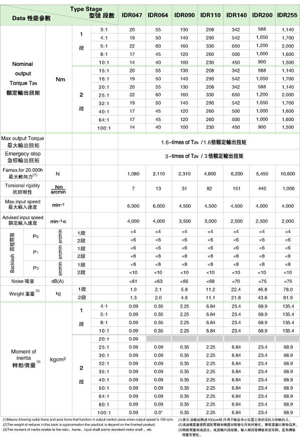 IDR 系列精密行星減速機技術(shù)參數(shù)