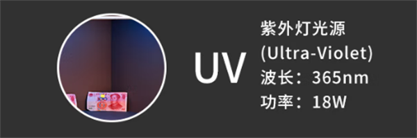 標(biāo)準(zhǔn)光源箱內(nèi)的UV是專門用來(lái)檢測(cè)熒光物質(zhì)的光源,其原理與驗(yàn)鈔用的紫光燈一致。熒光物質(zhì)在受到紫外光照射后,會(huì)被激發(fā),使所染物質(zhì)獲得類似熒石的閃閃發(fā)光的效應(yīng),使肉眼看到的物質(zhì)很白,達(dá)到增白的效果。