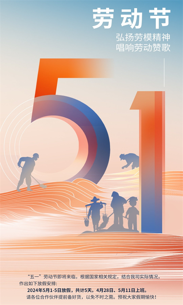 五一假期即將來臨,祝所有勞動(dòng)者節(jié)日快樂!同時(shí)為了確保您的訂單能夠準(zhǔn)時(shí)、安全地送達(dá),我們特此為您提供以下假期發(fā)貨安排。請(qǐng)您仔細(xì)閱讀,以便更好地了解我們的服務(wù)。
