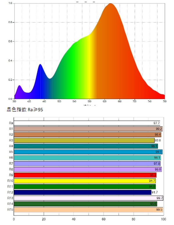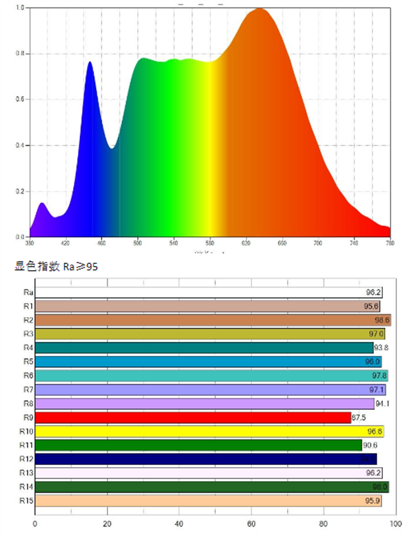 1.顯色指數(shù)RaZ95;2.CCT6500士300K;