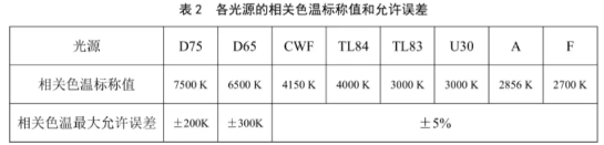 ① 相關(guān)色溫:各光源的相關(guān)色溫標稱值和允許誤差見表2。