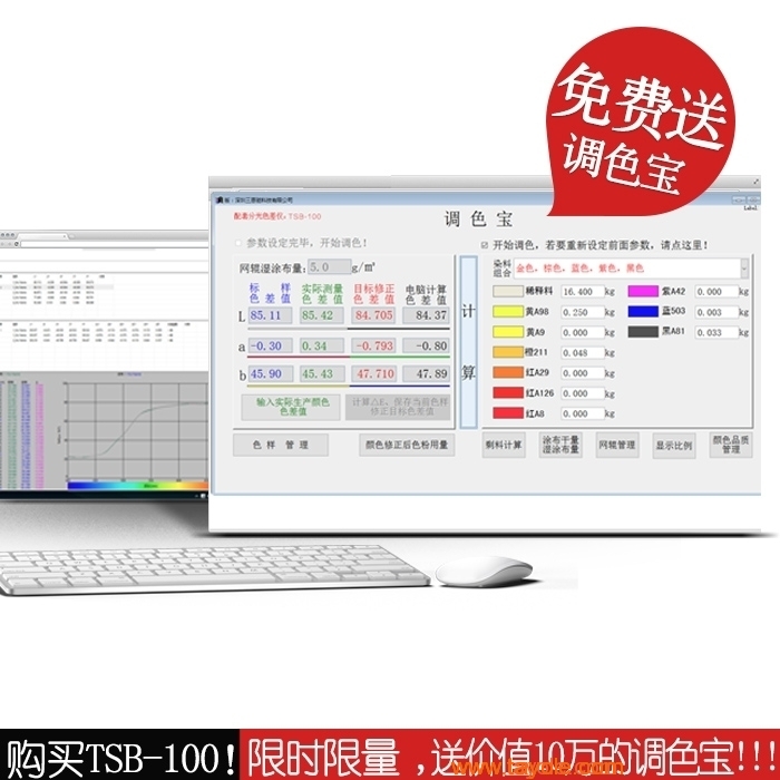 調(diào)色寶完全模擬現(xiàn)實(shí)的調(diào)色過程,是市場(chǎng)上您輸入任意染料組合及用量都能計(jì)算出相應(yīng)Lab值的產(chǎn)品。能和調(diào)色師實(shí)現(xiàn)良好的互動(dòng),直至顏色合格為止。該軟件界面簡(jiǎn)潔,操作簡(jiǎn)單,若您能熟練使用它,定會(huì)成為您調(diào)色的好幫手。
