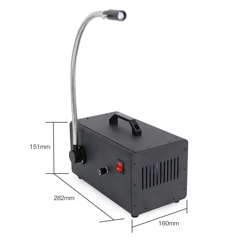 T-DPL-40型單點冷光源主要由:箱體、調(diào)光旋鈕、把手、電源插座、電源開關(guān)、光纖、聚光鏡等部件組成。