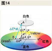 所表示的結(jié)果。 色差則在圖13上的圖形上表示出來(lái)。圖14使我們易于理解以L