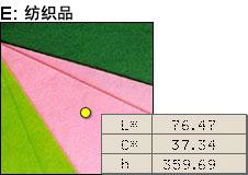 我們測(cè)量了布匹的粉紅色區(qū)域。 整個(gè)波長(zhǎng)范圍的光譜反射比是高的,特別是在600nm左右。 另外,在500nm左右的光譜反射比較低,說(shuō)明綠光和黃光被吸收。 |