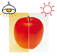 大概很多人都有這種經(jīng)驗,一個擺在蔬菜水果店里的蘋果在陽光照射下,顯得如此美味可口, 如果放在家里的日光燈下看起來就不是那么好了。 陽光、日光燈、鎢絲燈等,每一種照明都使同一個蘋果看起來不一樣。