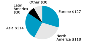 注:Europe:歐洲,North America:北美洲,Latin America:拉丁美洲,Asia:亞洲,Others:其他