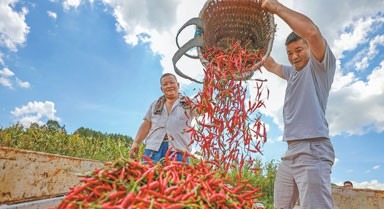 近年來(lái),貴州省綏陽(yáng)縣著力推進(jìn)辣椒標(biāo)準(zhǔn)化種植,圖為該社區(qū)村民把剛采摘的辣椒裝車。這些紅辣椒很大一部分要被制成干辣椒。在干辣椒的顏色分幾種,標(biāo)準(zhǔn)光源箱可以起到重要作用。