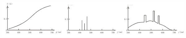 光源的相對(duì)光譜輻射功率(能量)分布決定了光源的顏色特性。