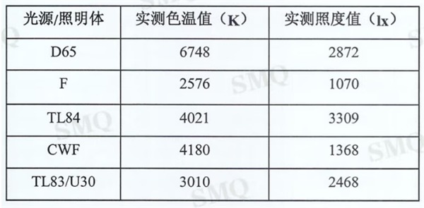 只有具備了一定的色溫和顯色指數(shù)(一般為5000k或者6500k色溫,95%以上的顯色指數(shù))的光源才能夠被稱為標(biāo)準(zhǔn)光源。P60六光源標(biāo)準(zhǔn)光源箱的色溫和照度測量結(jié)果如下,誤差均在合理范圍之內(nèi),因此是一種非常好用的對色工具。