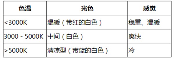 光源色溫不同,光色也不同,帶來的感覺也不相同:
