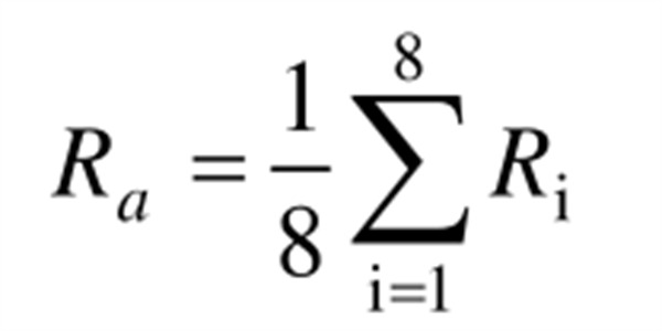 計算結(jié)果取其整數(shù)。取i=1~8個特殊顯色指數(shù),求其算術(shù)平均值,稱為一般顯色指數(shù)R。,即一般顯色指數(shù)R。是光源對CE規(guī)定的8種顏色的特殊顯色指數(shù)的平均值: