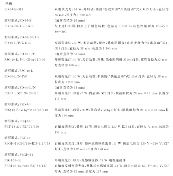 2. 熒光燈的LE類國(guó)際編碼系統(tǒng)