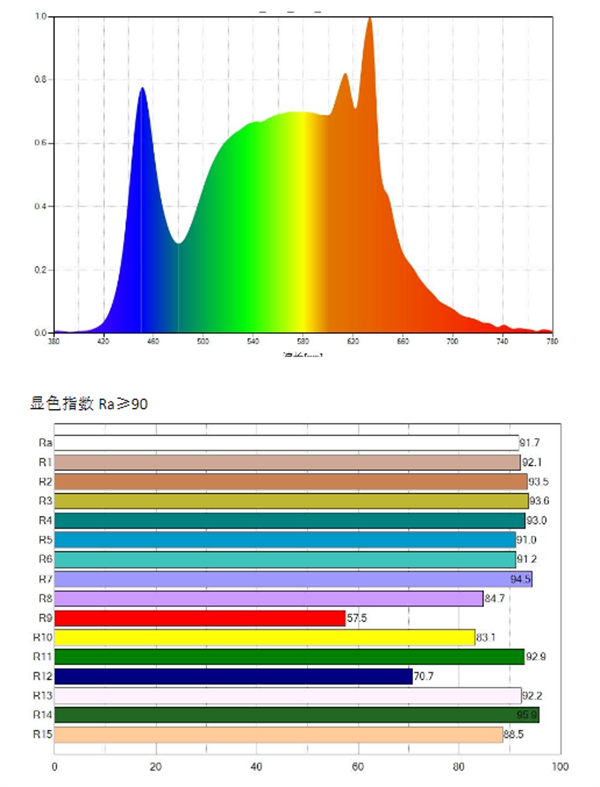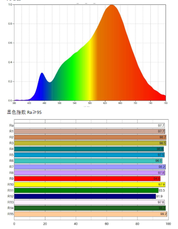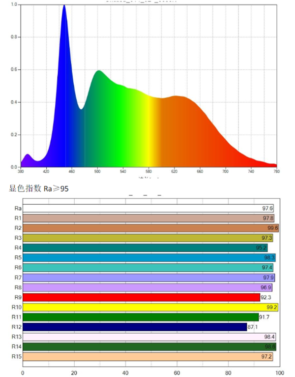 1.顯色指數(shù)RaZ95;2.CCT6500士300K;