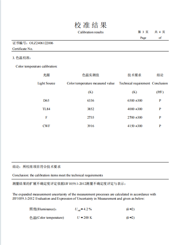 T60(5) 標(biāo)準(zhǔn)光源箱校準(zhǔn)證書(shū)